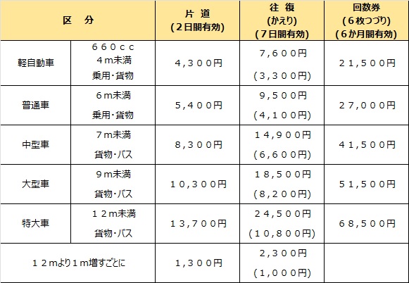 (注)上記運賃には運転者1名の旅客運賃が含まれます。