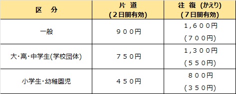 ※上記往復運賃下に記載の()カッコ内の金額は、往復割引後の「かえり運賃」となります。