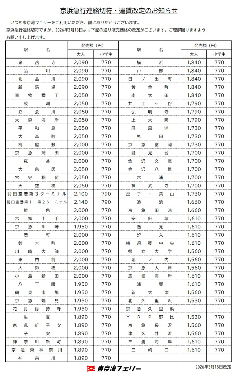 - 徒歩でご利用のお客様は電車等と同じように乗船券を購入し、出港時間までに乗船下さい。