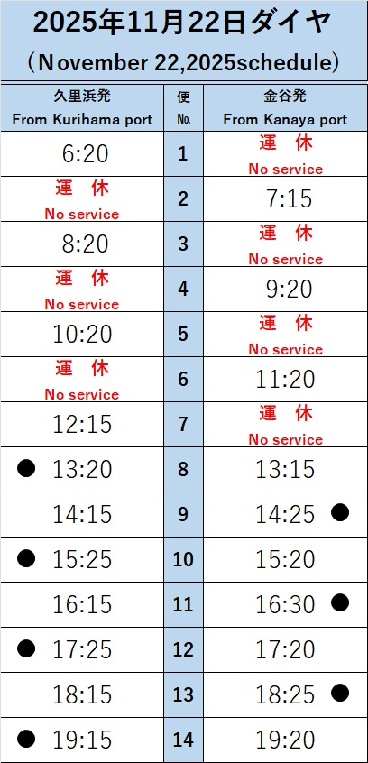 【久里浜港】13:20便、15:25便