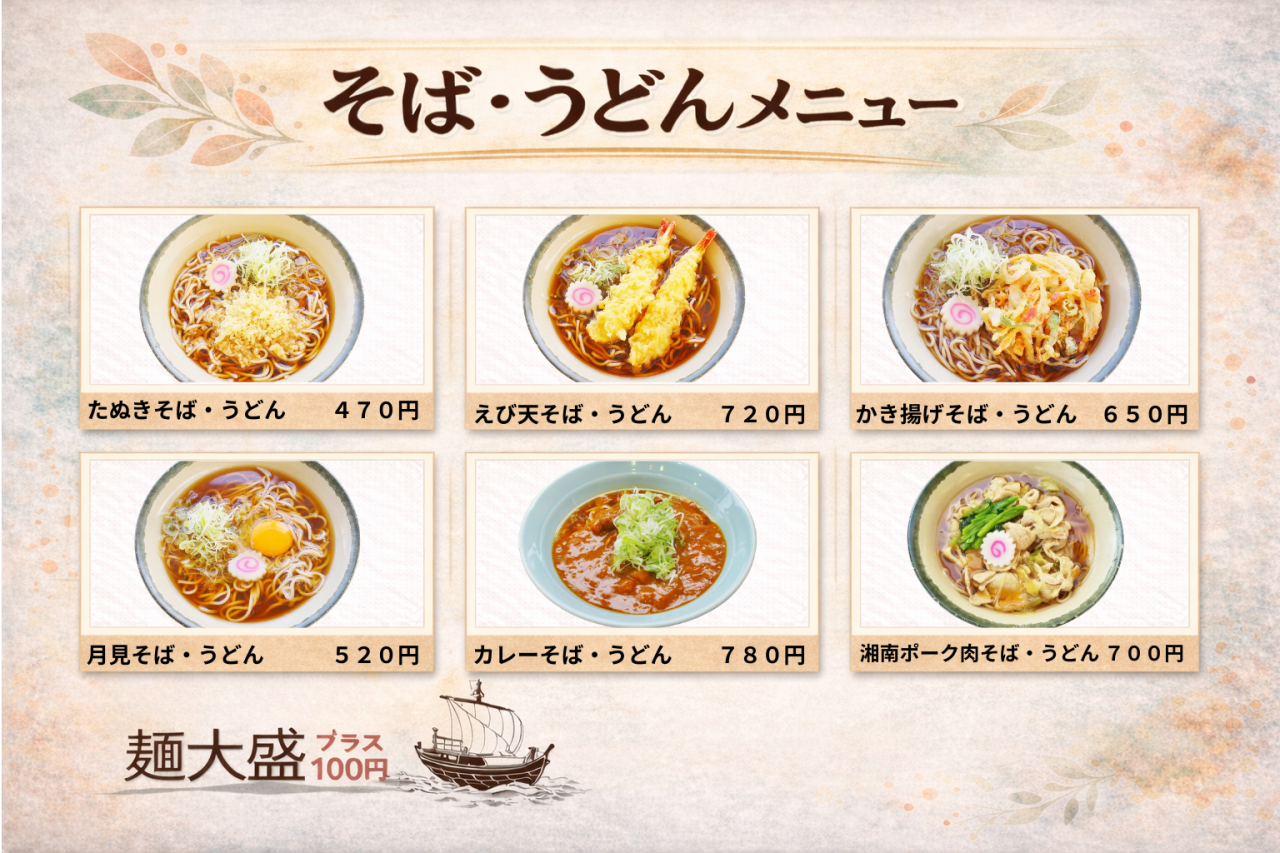 フェリー乗船待ち時間に気軽に食事ができる港のめん処。