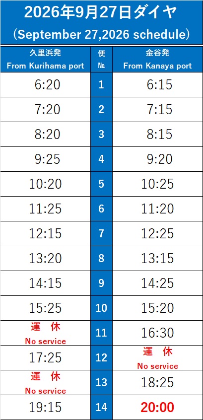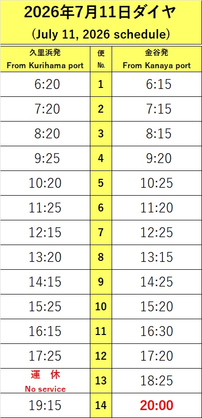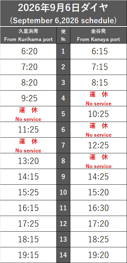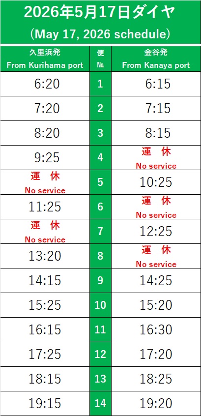 日付下に記載のダイヤにて運航いたします。
