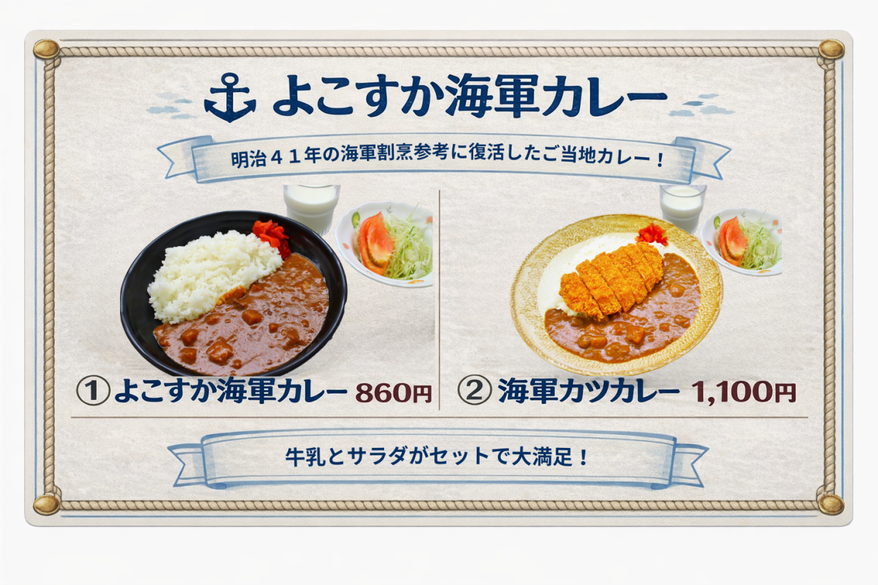 フードコートではフェリーご乗船の待ち時間にお食事が出来るよう、スピーディーな提供を心がけております。人気のよこすか海軍カレーはどこか懐かしい味わいです。